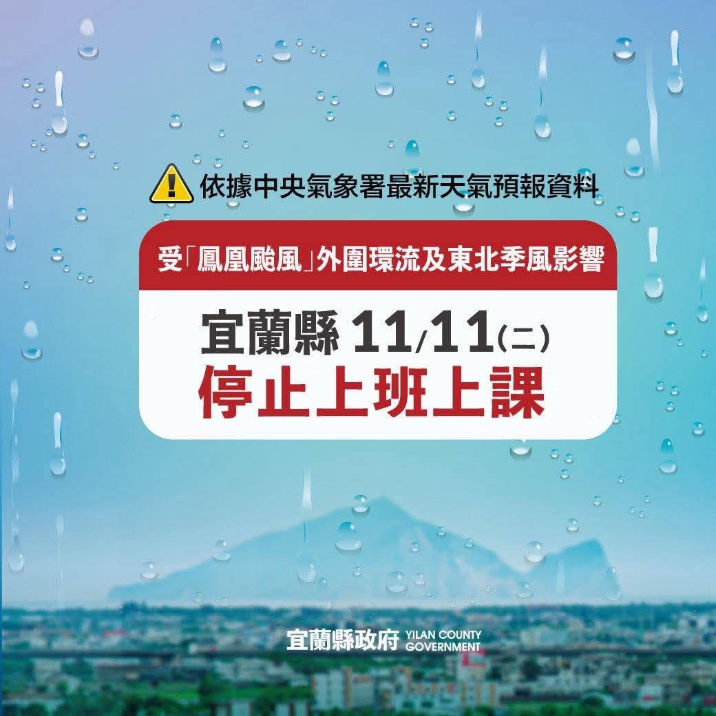 受「鳳凰颱風」影響:明日11/11(二)停止上班上課