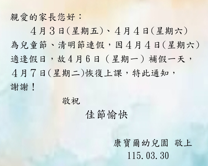115年清明節、兒童節放假通知單
